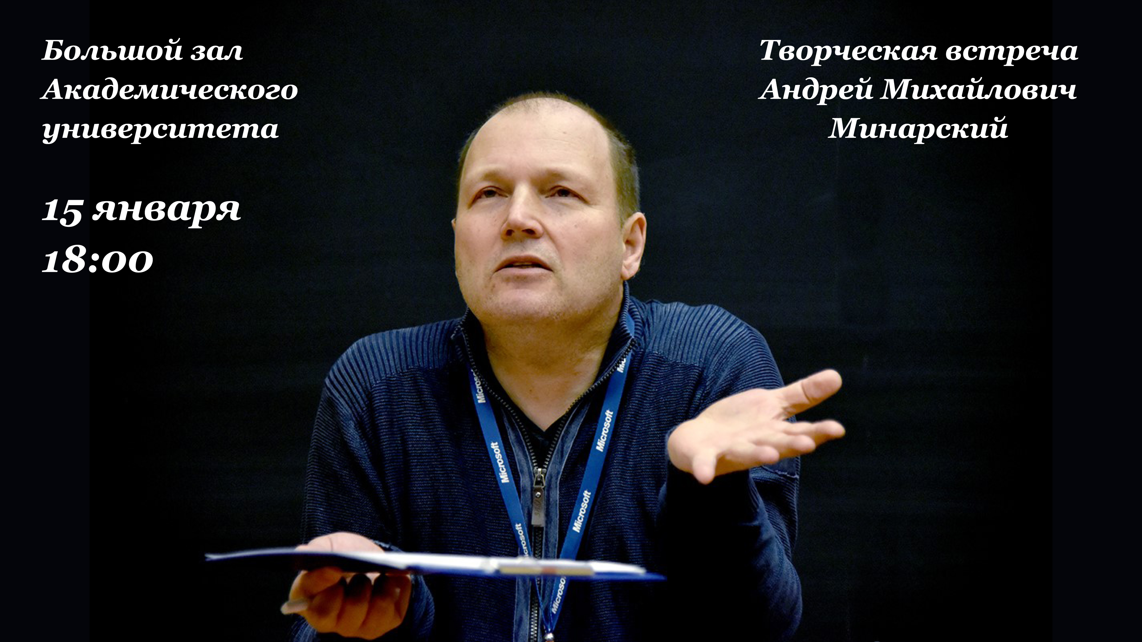 Андрей Михайлович Минарский приглашает всех-всех-всех на творческий вечер 15 января в 18:00 в Актовый зал Академического университета.